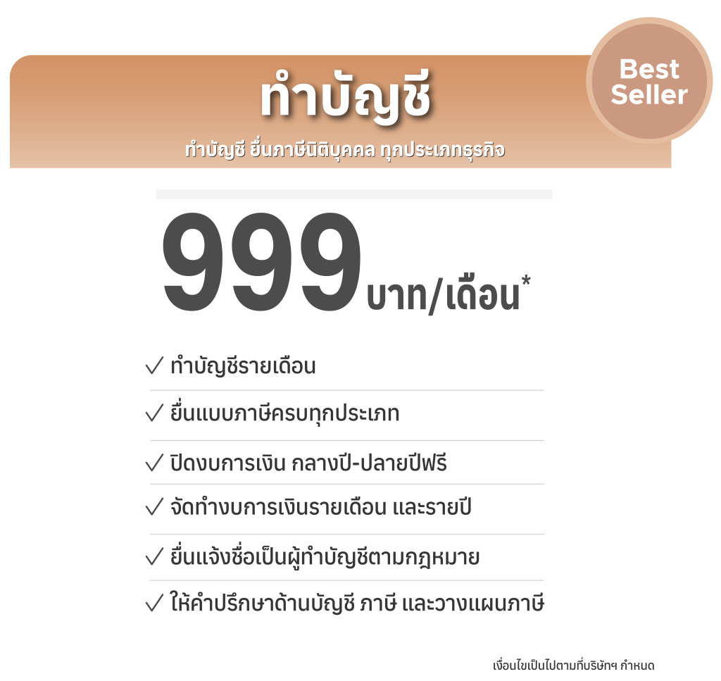 ราคาเริ่มต้นสบายกระเป๋าบริการ รับทำบัญชีออนไลน์ เริ่มต้นเพียง 999 บาท/เดือน เหมาะสำหรับผู้ประกอบการที่ต้องการความคุ้มค่าและบริการระดับมืออาชีพ