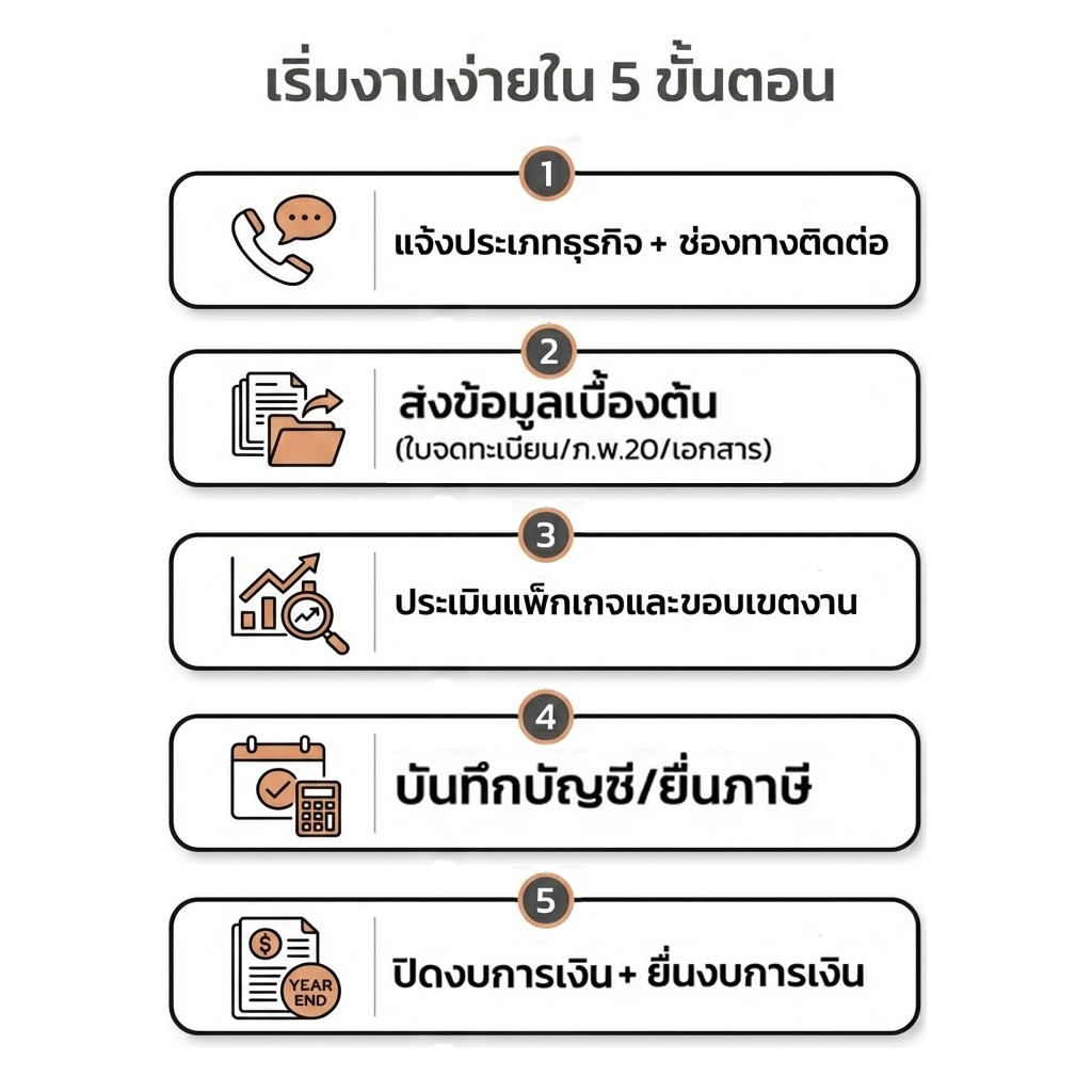 • รวมครบในแพ็กเดียว: งานรายเดือน + ภาษี + ปิดงบ + ยื่นงบ + ที่ปรึกษา